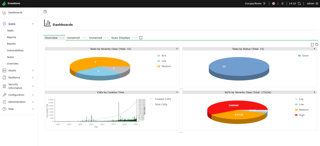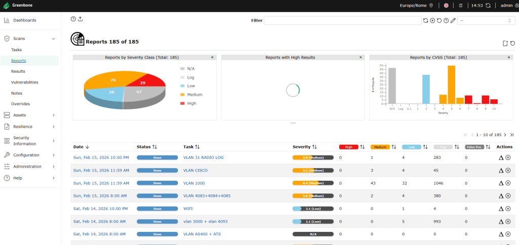 Tecnologie utilizzate: Container su macchine virtuali, Greenbone, LibreNMS.